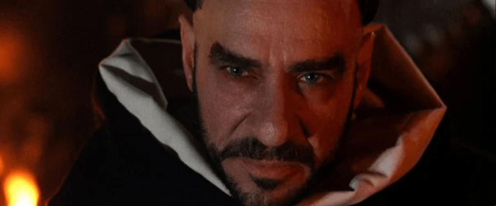 على الرغم من تصرفاته البدائية وظهوره لفترة قصيرة على الشاشة، يقدم ف. موراي ابراهام شخصية رائعة بشخصية المحقق. خيال أمبرتو إيكو أقرب إلى الحقيقة التاريخية لأنو أنقذه من مصير رهيب؛ في الرواية، يعود الشخص المذكور إلى أفينيون مع سجنائه ومبعوثي البابوية.